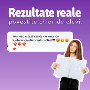 Comandă setul de 10 caiete interactive și primești GRATUIT pachetul de resurse în valoare de 90 lei: Teoria completă de 37 pagini (Mate + Română), formulele esențiale și stickerele motivaționale.
