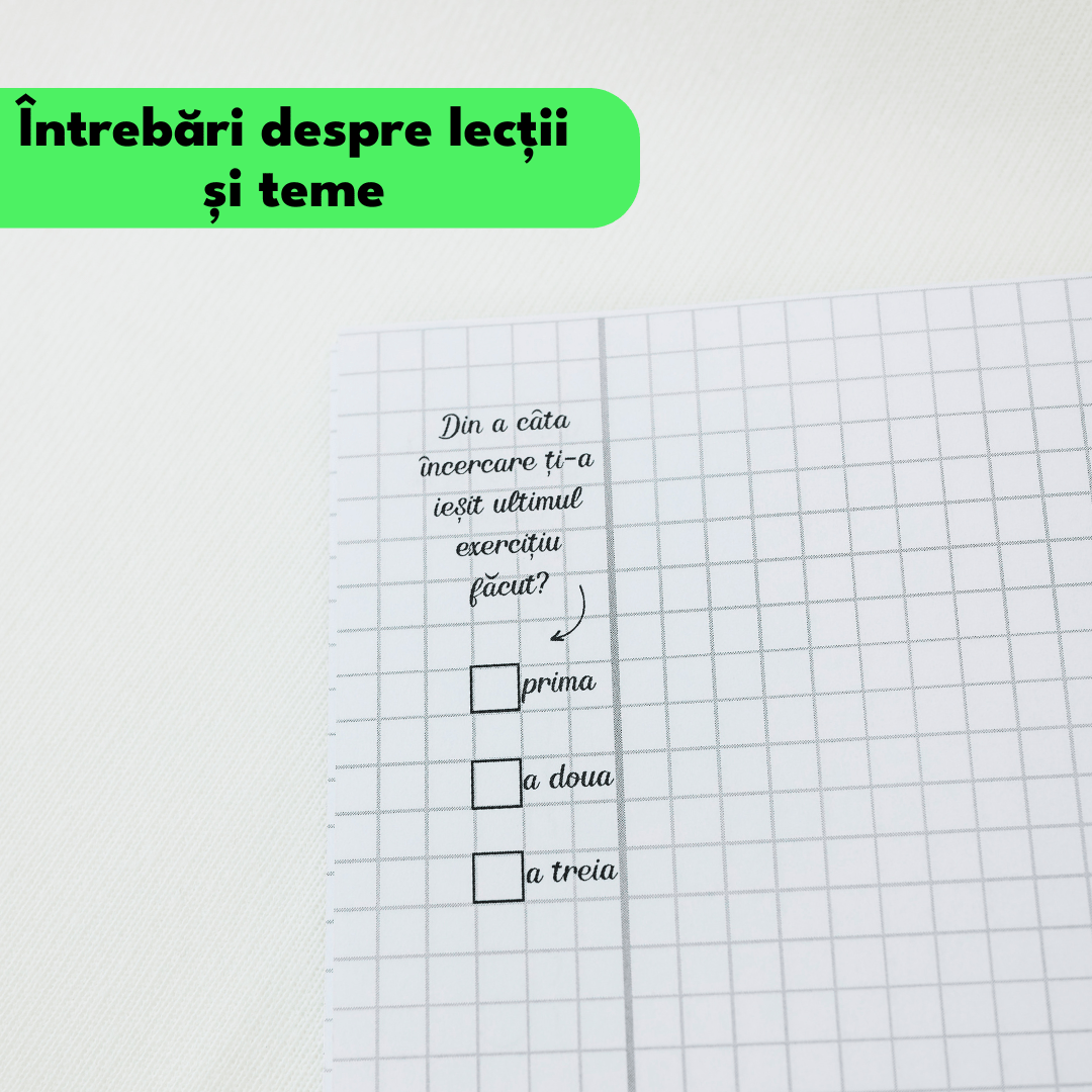 Transformă orele de matematică din stres în succes. Singurul instrument de studiu care înlocuiește teancurile de caiete goale cu un sistem organizat de învățare.