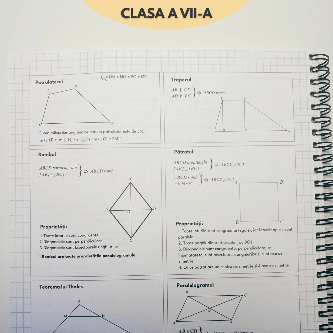 • 📐 SPAȚIU PENTRU GENIUL TĂU Ai secțiuni dedicate pentru a-ți nota propriile scurtături și metode de calcul, transformând acest ghid într-o moștenire educațională personalizată pentru toți cei 4 ani de gimnaziu.