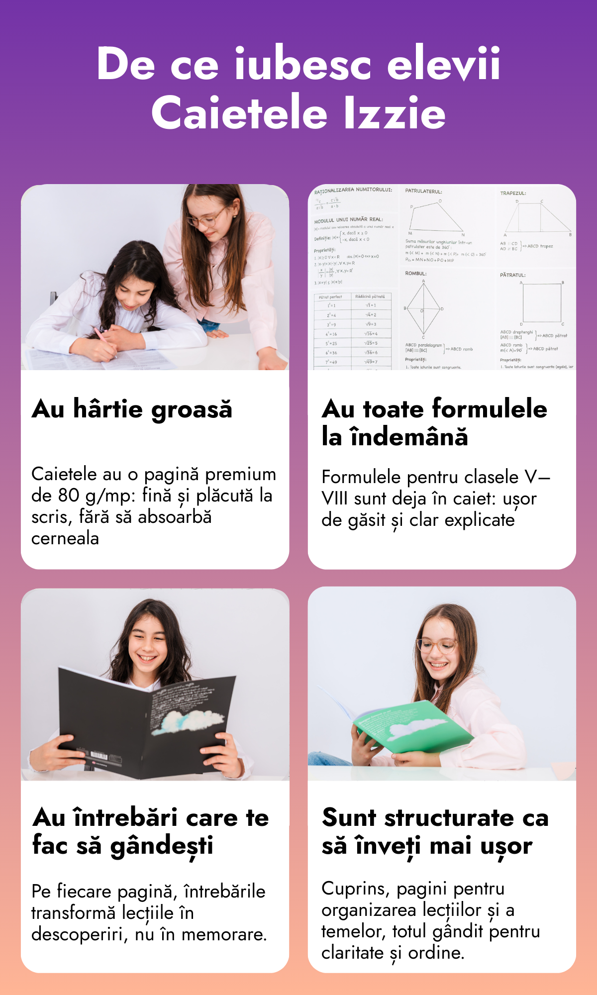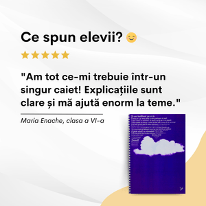 Comandă setul de 10 caiete interactive și primești GRATUIT pachetul de resurse în valoare de 90 lei: Teoria completă de 37 pagini (Mate + Română), formulele esențiale și stickerele motivaționale.