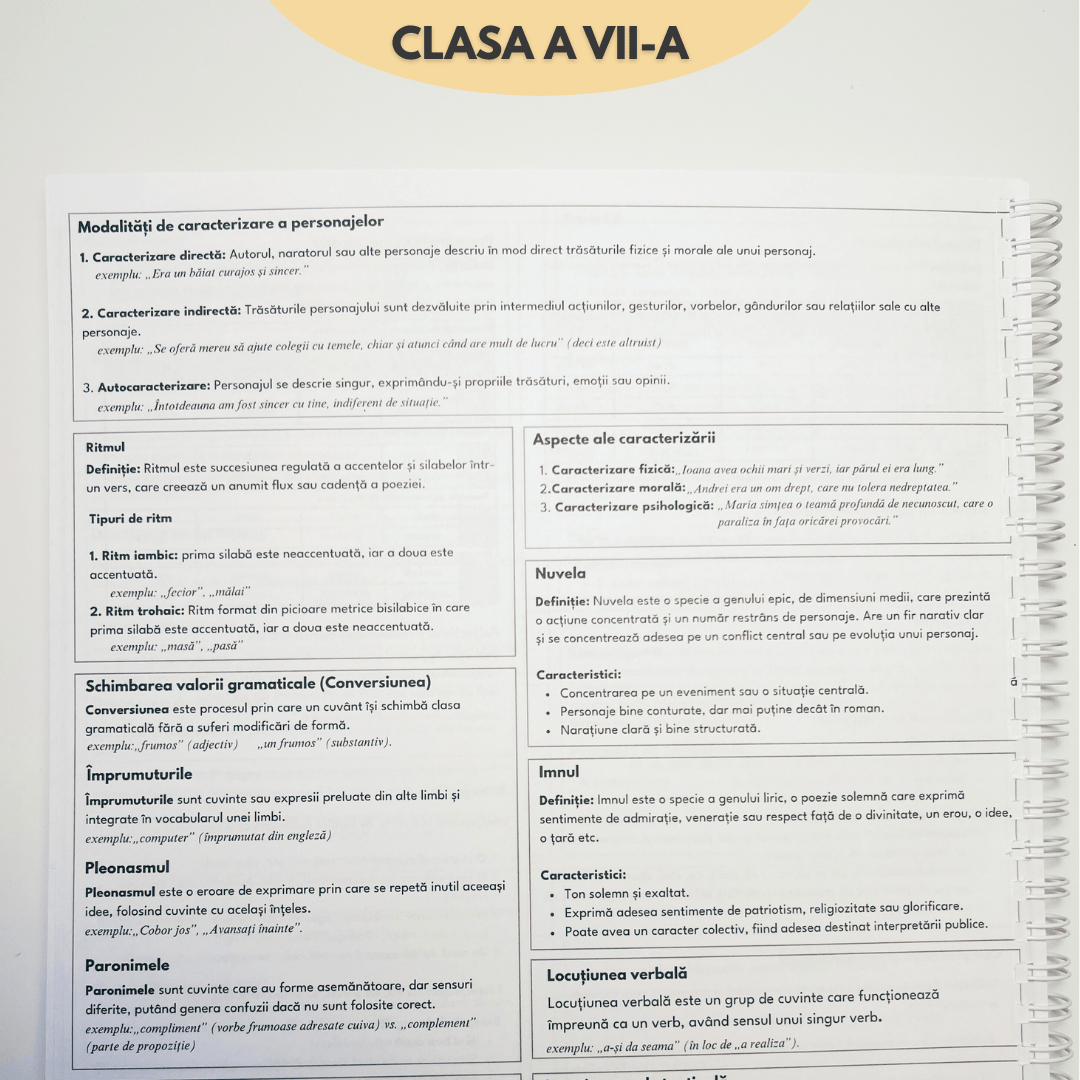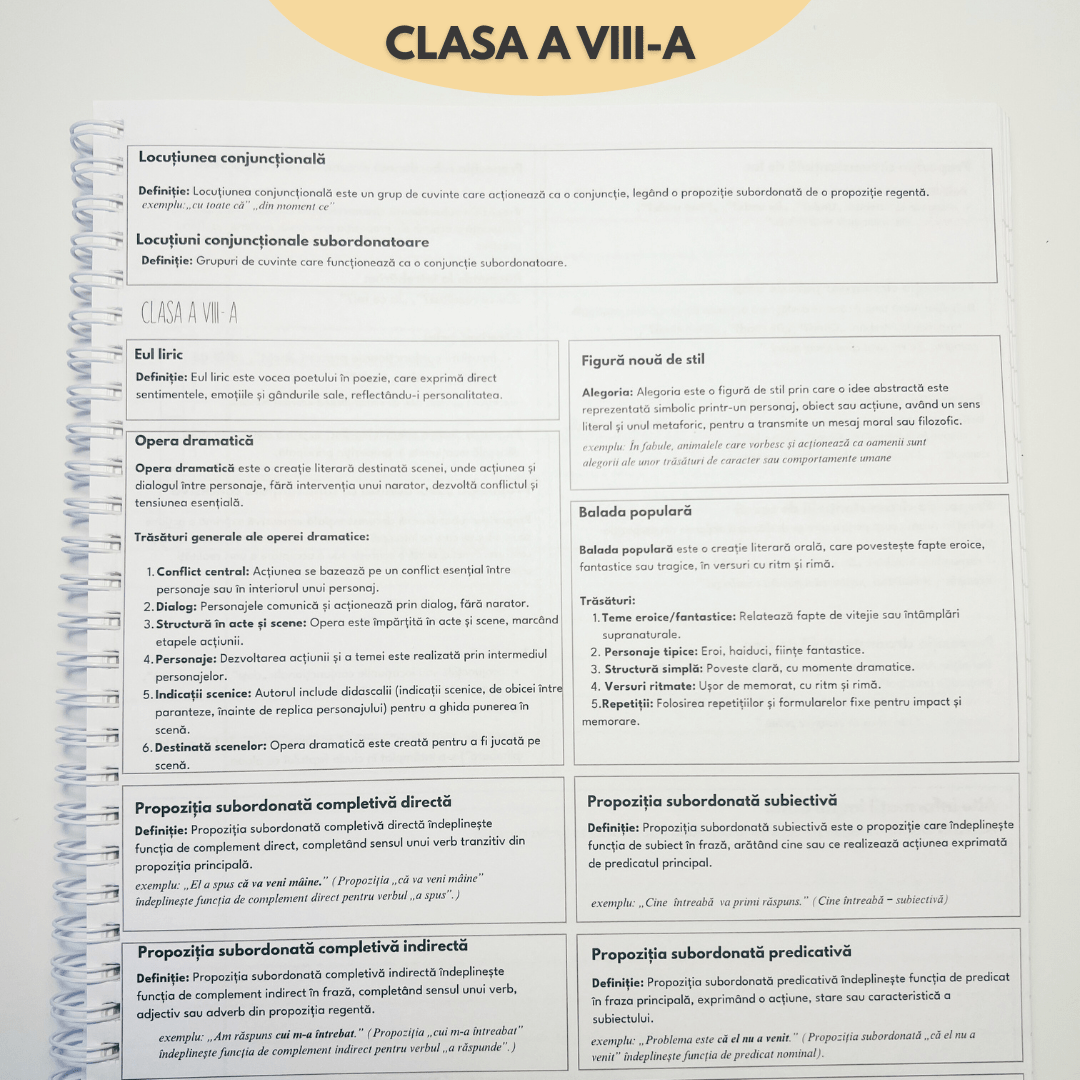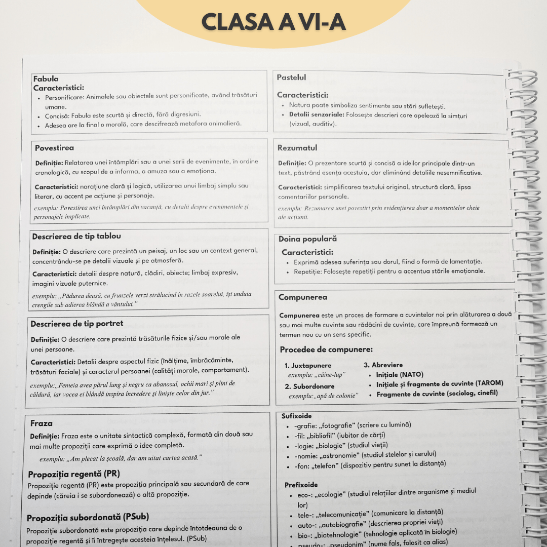 Transformă orele de română dintr-o corvoadă a dictării într-o experiență de succes. Singurul instrument de studiu care înlocuiește haosul notițelor incomplete cu un sistem logic și structurat de învățare.